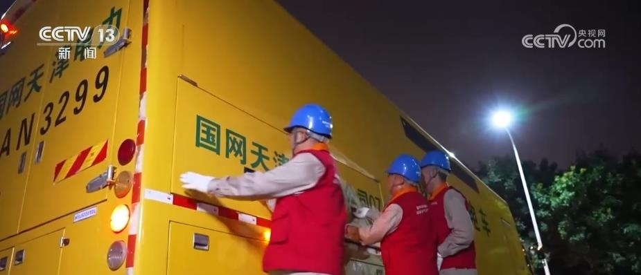 張黎明是這支共產(chǎn)黨員服務(wù)隊的隊長,有著20多年黨齡?,F(xiàn)在,他正帶著隊員們前往永定新河防潮閘,為那里支援一輛發(fā)電車。張黎明和隊員們頂著高溫,檢查發(fā)電車情況,隨后又進入涵閘泵站配電室,檢測供電設(shè)備運行情況,一切調(diào)試好之后新的任務(wù)又來了。