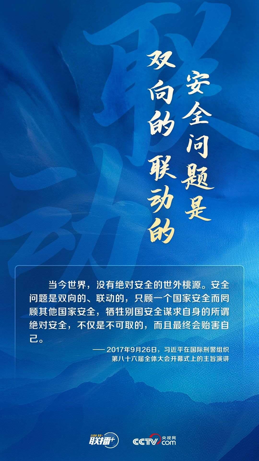 “治國常富,而亂國常貧?!毖胍暰W(wǎng)《聯(lián)播+》特推出海報,與您一同學(xué)習(xí)習(xí)主席關(guān)于全球安全的重要論述。