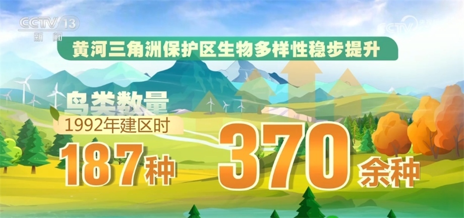 黃河干流在2022年首次全線達(dá)到Ⅱ類水質(zhì),隨著黃河流域生態(tài)保護(hù)和高質(zhì)量發(fā)展的不斷推進(jìn),黃河流域植被覆蓋度提升,“綠線”向西移動約300公里。目前,黃河三角洲保護(hù)區(qū)生物多樣性穩(wěn)步提升,鳥類數(shù)量由1992年建區(qū)時(shí)的187種增加到了現(xiàn)在的370余種。