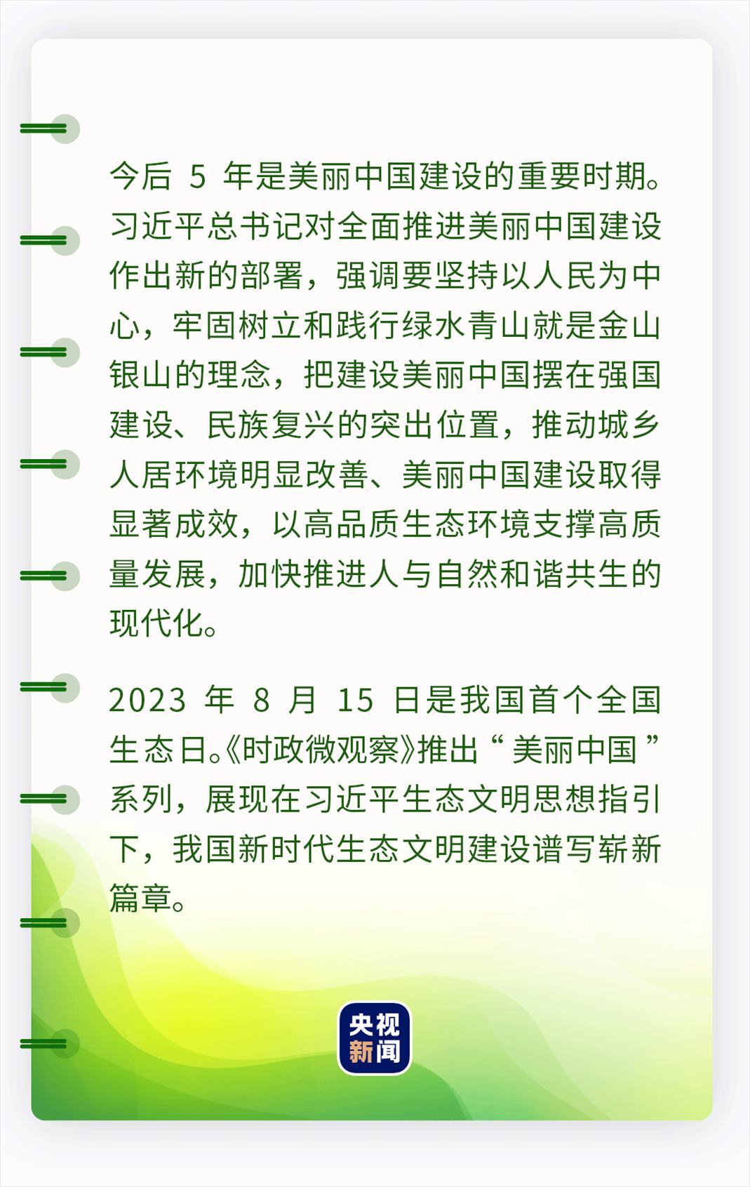 在習(xí)近平生態(tài)文明思想指引下,中國(guó)主張加快構(gòu)筑尊崇自然、綠色發(fā)展的生態(tài)體系,共建清潔美麗的世界,以實(shí)實(shí)在在的綠色行動(dòng),為加強(qiáng)全球氣候與環(huán)境治理注入強(qiáng)大動(dòng)力,發(fā)揮引領(lǐng)作用。