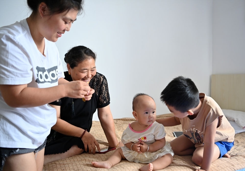 轉移群眾在天津市西青區(qū)親和儒園安置點內照看小孩(8月9日攝)。新華每日電訊李然攝