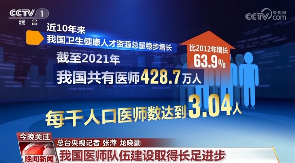 國家衛(wèi)生健康委相關負責人介紹,近10年來,我國衛(wèi)生健康人才資源總量穩(wěn)步增長,截至2021年,我國共有醫(yī)師428.7萬人,比2012年增長了63.9%,每千人口醫(yī)師數(shù)達到3.04 人。到2025年,我國每千人口醫(yī)師數(shù)將達到3.2人。
