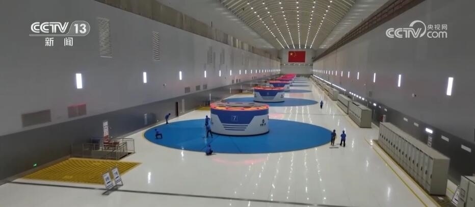 我現(xiàn)在就在白鶴灘水電站的左岸地下廠(chǎng)房,在我身后一字排開(kāi)的,就是處于全發(fā)狀態(tài)當(dāng)中的百萬(wàn)千瓦水輪發(fā)電機(jī)組。站在這兒,我其實(shí)只能看到它冒出地面的3米,而在我腳下還有51米,單臺(tái)機(jī)組的總重量接近8000噸。之所以讓它成為世界級(jí)的先進(jìn)的水輪發(fā)電機(jī)組,除了它的這種大體量和大功率之外,更重要的是在研發(fā)階段解決了許多世界級(jí)的難題。比如,它所克服的特殊工況下的壓力脈動(dòng),就能夠讓整臺(tái)機(jī)組在運(yùn)行的時(shí)候更加的安全、穩(wěn)定。再比如說(shuō),在機(jī)組高速運(yùn)轉(zhuǎn)的過(guò)程當(dāng)中,對(duì)于平穩(wěn)性的要求近乎于苛刻,我現(xiàn)在就站在機(jī)組的頂板上,在地面上立了幾枚硬幣,它們現(xiàn)在是穩(wěn)穩(wěn)地立在這兒,但是如果我輕輕的施加外力,它就會(huì)傾倒,看得出來(lái)它的平穩(wěn)性。而正是一代又一代的中國(guó)水電人的不斷努力,才實(shí)現(xiàn)了水輪發(fā)電機(jī)組從跟跑到并跑到超越的發(fā)展速度。鑄造出了這樣的國(guó)之重器。