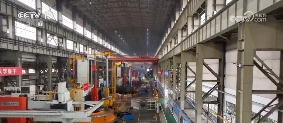 總臺(tái)記者 蔣林:我現(xiàn)在就是在位于四川德陽(yáng)的東方電機(jī)的生產(chǎn)車(chē)間,這里也是目前中國(guó)最為重要的能源裝備的制造基地?,F(xiàn)在一天全國(guó)所發(fā)的電量里面,每4度有1度就來(lái)自于這里的設(shè)備。而且根據(jù)我們掌握的最新的生產(chǎn)數(shù)據(jù),也能夠感覺(jué)到目前中國(guó)能源發(fā)展的新趨勢(shì)。截止到2023年的6月底,在過(guò)去一年當(dāng)中,這里所生產(chǎn)的設(shè)備里有90%都是清潔能源的設(shè)備。比如,我身旁的這個(gè)大家伙,它是華龍一號(hào)發(fā)電機(jī)組的轉(zhuǎn)軸,而像這樣的大塊頭在這個(gè)廠(chǎng)房里面比比皆是。
