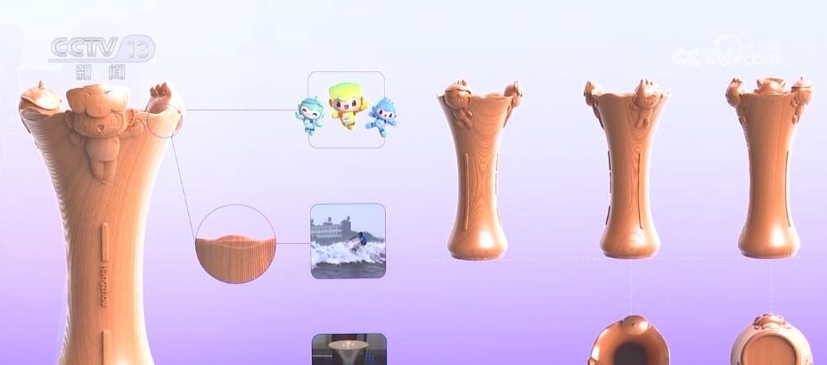 頒獎(jiǎng)托盤設(shè)計(jì)靈感則來源于微風(fēng)中波動(dòng)的西湖水面,結(jié)合本屆亞運(yùn)會(huì)核心圖形“潤澤”中的飄逸絲帶意向,整體給人流動(dòng)的感覺。