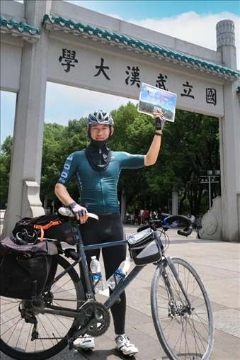2023年是云南昆明小伙文迪與武漢大學(xué)相遇的年份,2023公里是文迪的家鄉(xiāng)到武大的距離。“這是我一直以來(lái)的夢(mèng)想”文迪說(shuō),在初中時(shí),他讀到大學(xué)新生騎行報(bào)到的故事,從此下定決心,未來(lái)考上大學(xué)后“考到哪里,就騎到哪里”。今年高考,文迪被武大資源與環(huán)境科學(xué)學(xué)院空間信息與國(guó)土資源專業(yè)錄取,從云貴高原到荊楚大地,文迪一路騎行,來(lái)了一場(chǎng)特別的新生報(bào)到之旅!8月21日,這場(chǎng)既是旅游又是“流浪”的旅途終于結(jié)束,文迪也來(lái)到了珞珈山下,即將在這座最美大學(xué)校園里開始四年的大學(xué)生活。