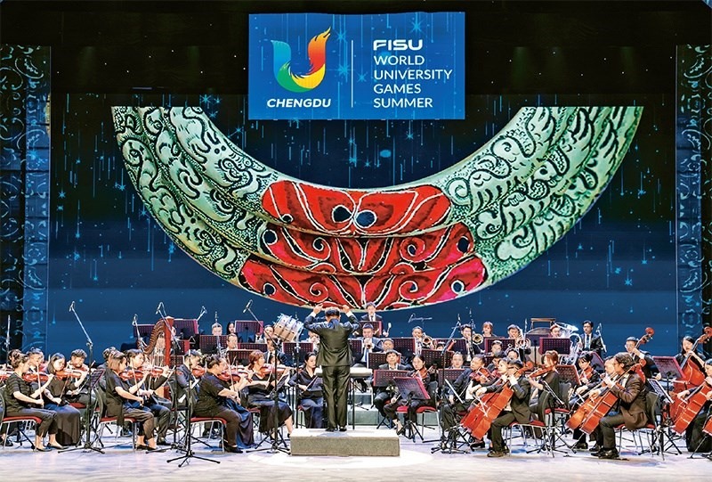 圖為2023年7月30日,音樂(lè)家在為參加成都大運(yùn)會(huì)的各代表團(tuán)成員演奏《瑤族舞曲》。 新華社記者 沈伯韓/攝