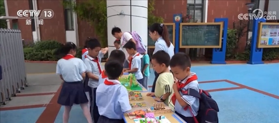 在江西贛州的這所小學,開學第一天,形態(tài)各異的機器人分布在校園各地,孩子們既可以聽老師講解機器人知識,也可以動手與機器人互動體驗。學校還專門設置了科技作品成果展區(qū),學生們將假期里動手制作的科技小作品展示出來,與其他同學交流學習。