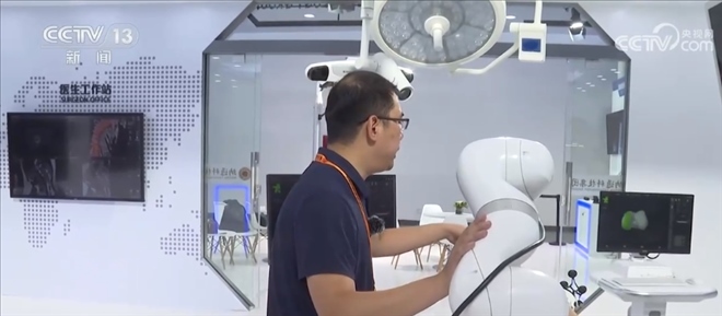 總臺記者 王豐:這里主要呈現(xiàn)的是一個智能手術(shù)室的系統(tǒng),這是一套幫助醫(yī)生進(jìn)行精準(zhǔn)手術(shù)計(jì)劃的設(shè)備,比如說我們可以利用一張X光片,一張CT或者一張核磁影像,就可以還原出一個3D的影像,醫(yī)生通過3D的建模,可以精準(zhǔn)地看到病灶所在的位置,包括他如何下刀,來精準(zhǔn)地制定手術(shù)計(jì)劃。