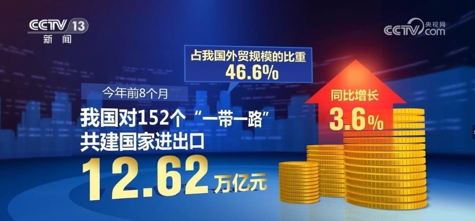 海關(guān)統(tǒng)計顯示,2023年前8個月,我國對152個“一帶一路”共建國家進出口12.62萬億元,同比增長3.6%,占我國外貿(mào)規(guī)模的比重為46.6%。其中,對東盟進出口4.11萬億元,增長1.6%,對中亞五國進出口3904.7億元,增長34.1%。