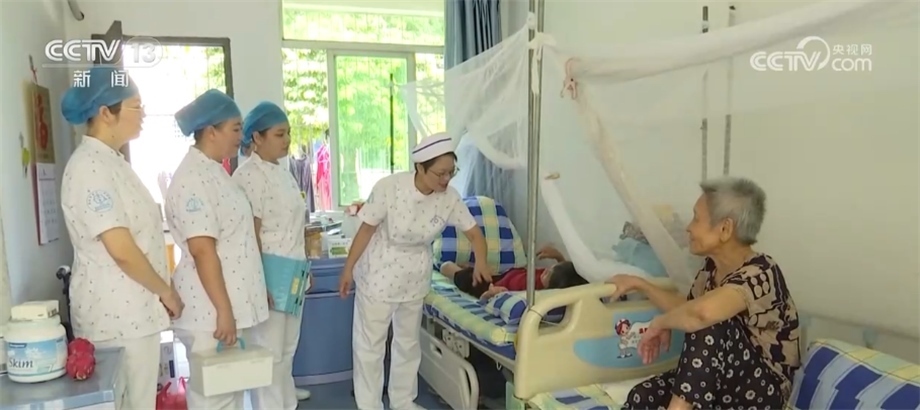 由于住在這里的康復病人平均年齡都比較大,除了進行正常的護理外,邢少云每到一間病房都會拉著他們的手聊上一會兒,老人們看到邢少云的到來也都顯得格外開心。