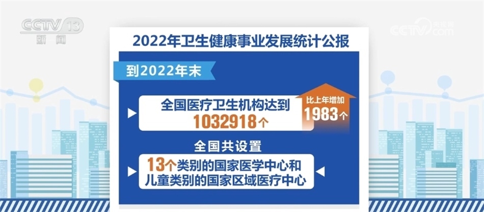 《公報(bào)》顯示,我國(guó)醫(yī)療衛(wèi)生資源總量繼續(xù)增加。到2022年末,全國(guó)醫(yī)療衛(wèi)生機(jī)構(gòu)達(dá)到1032918個(gè),比上年增加1983個(gè)。全國(guó)共設(shè)置13個(gè)類(lèi)別的國(guó)家醫(yī)學(xué)中心和兒童類(lèi)別的國(guó)家區(qū)域醫(yī)療中心。全國(guó)醫(yī)療衛(wèi)生機(jī)構(gòu)床位975.0萬(wàn)張,每千人口醫(yī)療衛(wèi)生機(jī)構(gòu)床位數(shù)由2021年的6.70張?jiān)黾拥?022年的6.92張。全國(guó)衛(wèi)生人員總數(shù)1441.1萬(wàn)人,比上年增加42.5萬(wàn)人。每千人口執(zhí)業(yè)(助理)醫(yī)師3.15人,每千人口注冊(cè)護(hù)士3.71人。