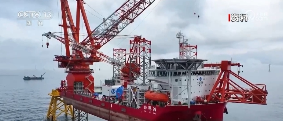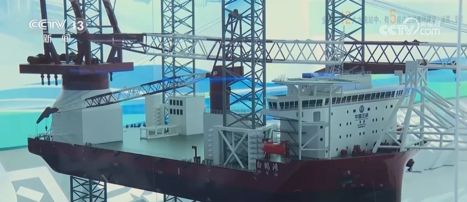 這是目前國內最先進的海上風電安裝平臺“白鶴灘”號的模型,“白鶴灘”號也是全球首艘新一代2000噸級海上風電安裝平臺。