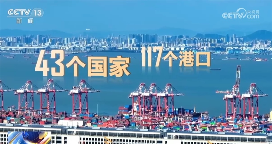 向大海,這是2013年時(shí)中國(guó)與共建“一帶一路”國(guó)家間的水運(yùn)航線。十年間,共建“一帶一路”國(guó)家間的水運(yùn)航線數(shù)量翻了一番,新增航線達(dá)到了1344條,穿梭其中的貨船增加150%?!敖z路海運(yùn)”航線已通達(dá)全球43個(gè)國(guó)家的117個(gè)港口,織出了一張聯(lián)通世界的貿(mào)易流動(dòng)網(wǎng)絡(luò)。