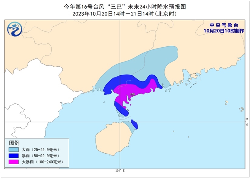 央視網(wǎng)消息:中央氣象臺(tái)10月20日10時(shí)繼續(xù)發(fā)布臺(tái)風(fēng)藍(lán)色預(yù)警: