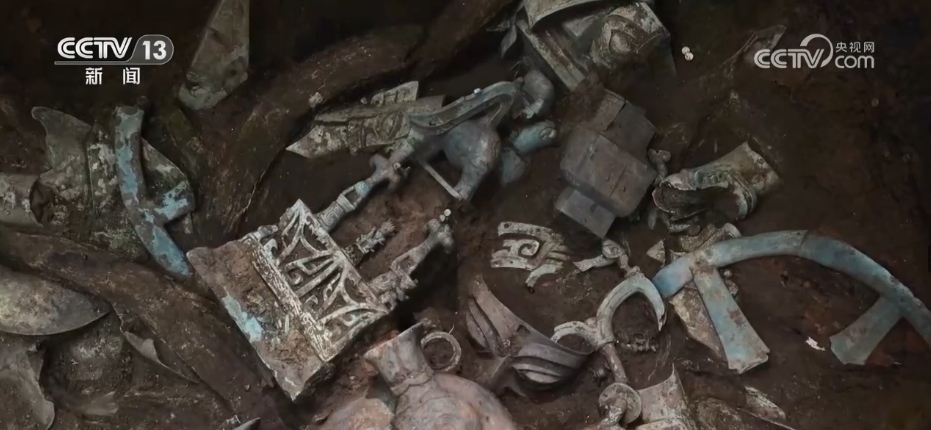 總臺央視記者 張春玲:很多考古發(fā)掘出來的文物是破碎甚至變形非常嚴重。頂尊銅人像、大神獸它們分別來自于8號坑和3號坑,“跨坑組合”成一個完整的鼎尊騎獸人像。通過最新的數(shù)字文物修復技術和3D打印技術,最終一個完整組合的器型呈現(xiàn)在了觀眾面前。