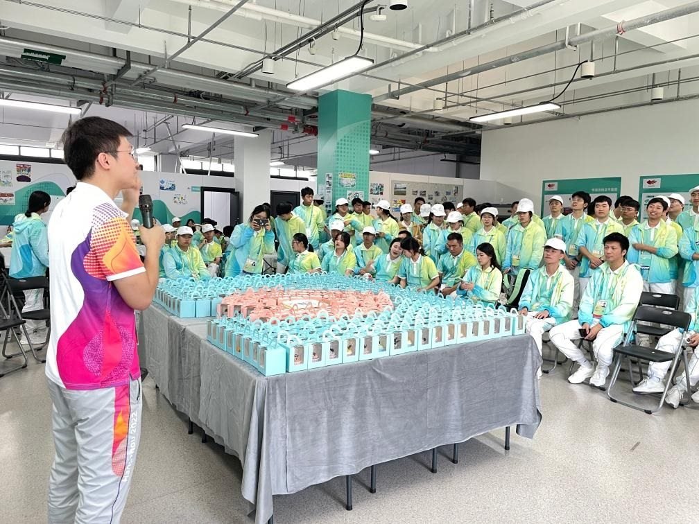 “我們?cè)缟衔妩c(diǎn)從學(xué)校出發(fā),晚上七點(diǎn)左右從場(chǎng)館離開。這段時(shí)間雖然辛苦,卻很有意義,也結(jié)識(shí)到了不少朋友?!滨U明聰擦擦頭上的汗珠笑著說。