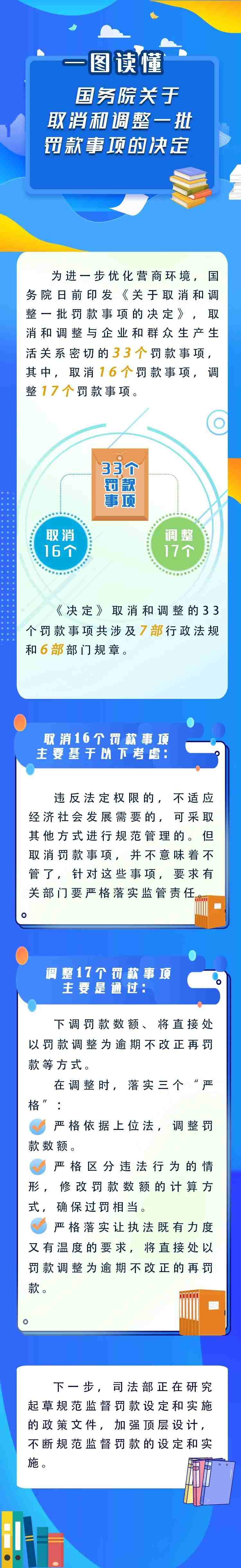 司法部有關(guān)負(fù)責(zé)人表示,取消罰款事項(xiàng)并不意味著不管了,對(duì)于這些事項(xiàng),有關(guān)部門(mén)要嚴(yán)格落實(shí)監(jiān)管責(zé)任。