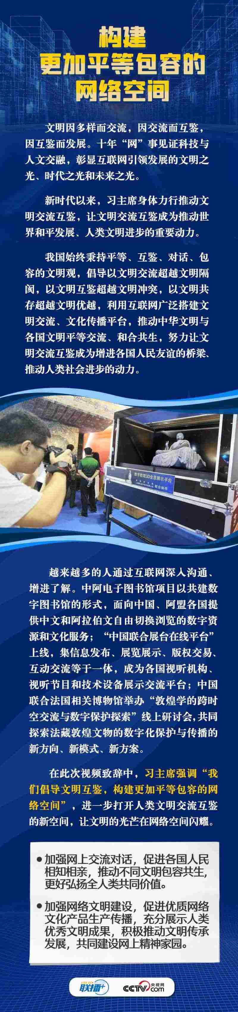 面對(duì)新的時(shí)代課題,習(xí)主席在此次視頻致辭中倡導(dǎo)構(gòu)建更加普惠繁榮、更加和平安全、更加平等包容的網(wǎng)絡(luò)空間。這三個(gè)“網(wǎng)絡(luò)空間”具體內(nèi)容是什么?構(gòu)建網(wǎng)絡(luò)“新空間”有什么具體措施?央視網(wǎng)《聯(lián)播+》與您一同學(xué)習(xí)。