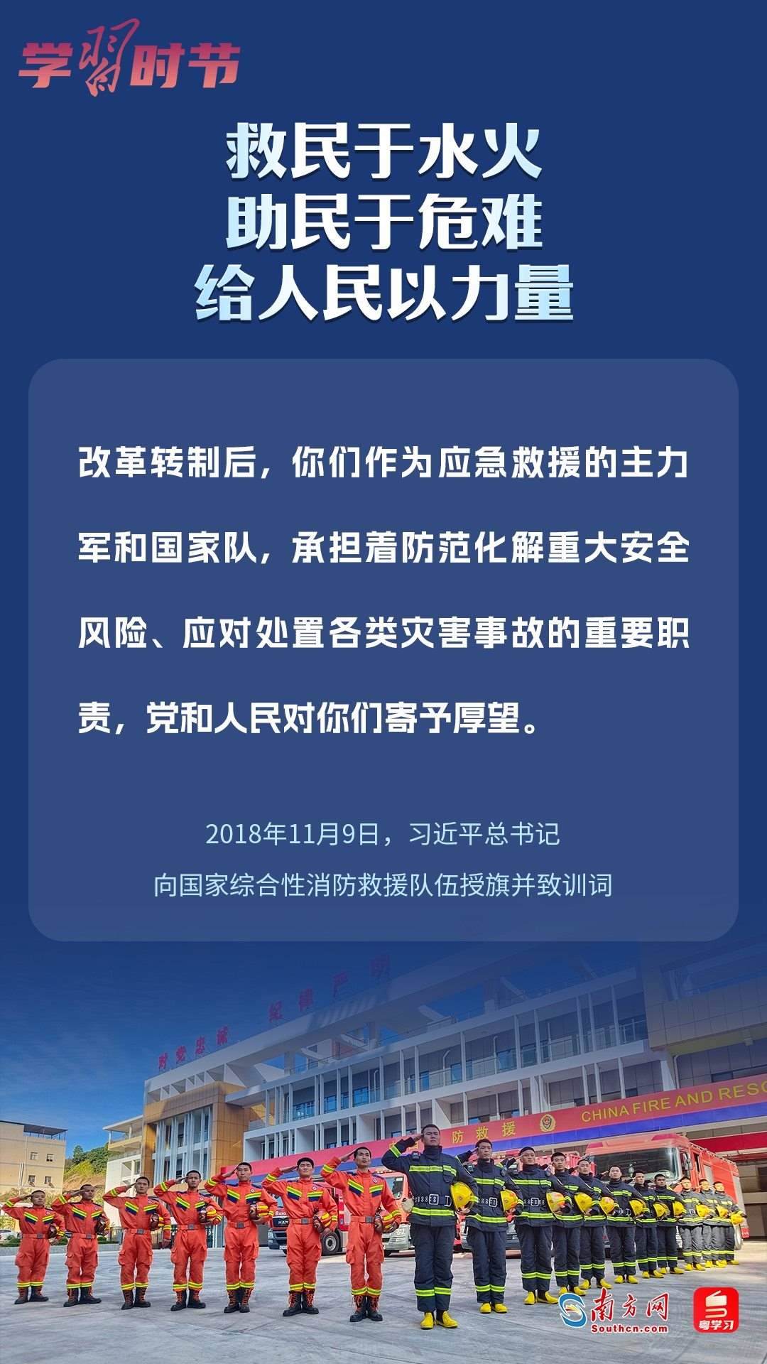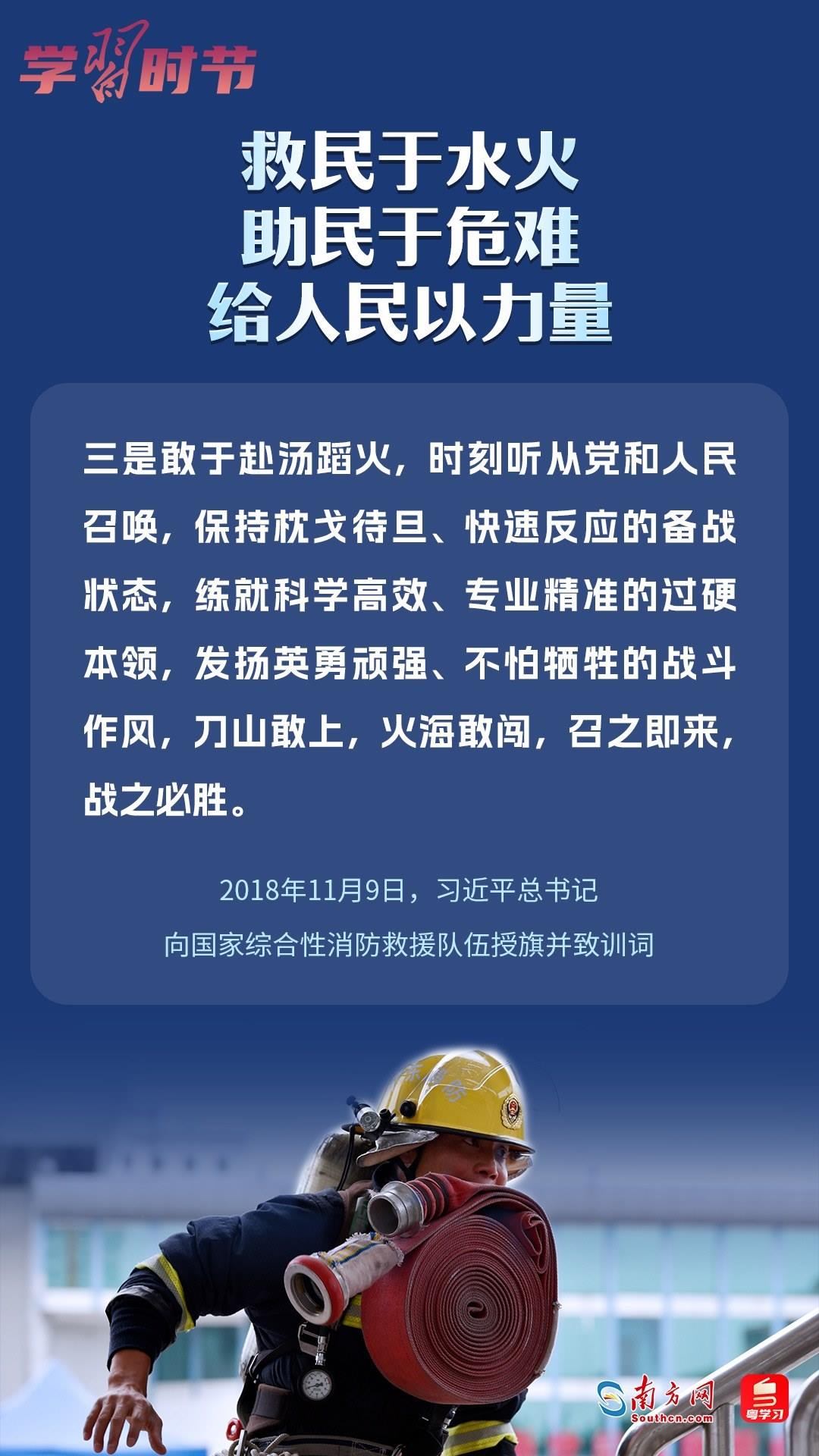 今年11月9日是習(xí)近平總書記為國家綜合性消防救援隊(duì)伍授旗并致訓(xùn)詞五周年,也是全國消防日。讓我們一起重溫總書記重要訓(xùn)詞,感受總書記對(duì)百姓安危的深情牽掛和對(duì)“火焰藍(lán)”的殷切期望。