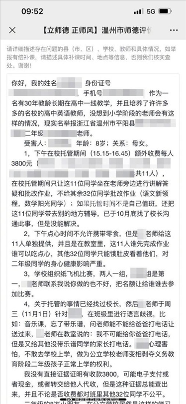 ·溫州一小學(xué)老師被舉報(bào)開展有償答疑,當(dāng)?shù)亟逃郑撼闪0嗾{(diào)查取證。