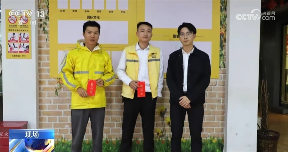 ?????? 為了褒獎賴清華、陳庭輝兩名外賣員的善行義舉,于都縣貢江鎮(zhèn)政府工作人員來到外賣站點對他們進行了表彰,并送上每人一千元的慰問金,后續(xù)也將會為他們申報見義勇為先進個人稱號。