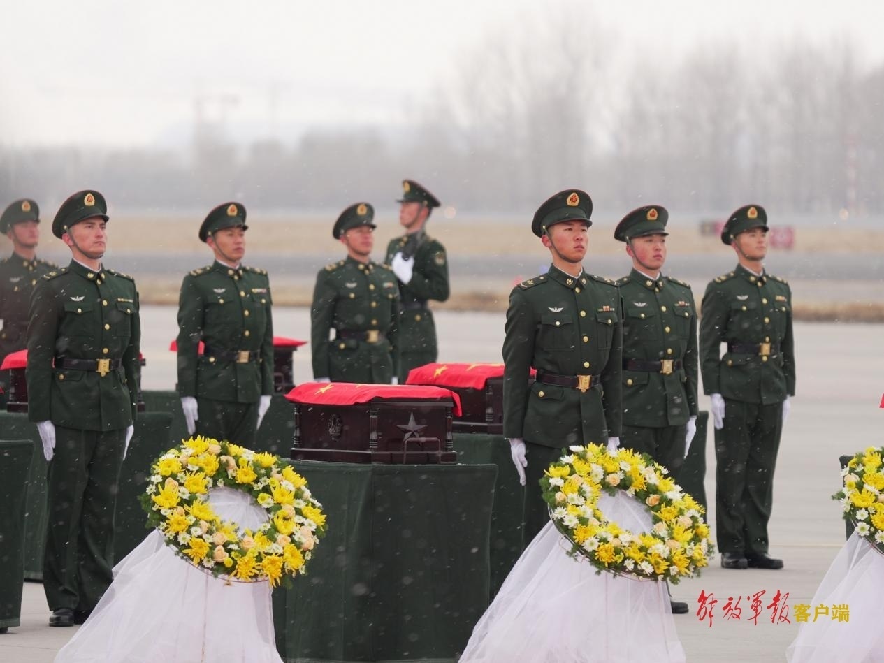 第十批在韓中國人民志愿軍烈士遺骸迎回儀式。中國軍網(wǎng)記者韓金寶 攝