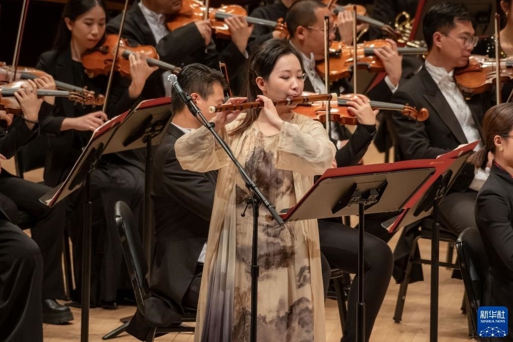 11月24日,中央音樂(lè)學(xué)院竹笛演奏家范臨風(fēng)在美國(guó)紐約卡內(nèi)基音樂(lè)廳進(jìn)行演出。新華社發(fā)(邁克爾·維奧拉果攝)