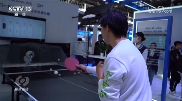 數(shù)字科技鏈的展館有一臺(tái)全球首款擬人型發(fā)球機(jī)器人,能實(shí)時(shí)捕捉高速乒乓球的軌跡,生成專(zhuān)業(yè)報(bào)告,數(shù)字科技讓運(yùn)動(dòng)變得更加有趣。