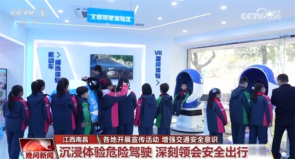 在江西南昌公安交通治理體驗(yàn)中心,來自南昌市郵政路小學(xué)的同學(xué)們在民警的帶領(lǐng)下,開展了一堂別開生面的交通安全課。大家戴上VR設(shè)備,通過機(jī)動車模擬駕駛、交通事故模擬裝置等,沉浸式體驗(yàn)了酒駕醉駕、超速等交通違法行為的場景。晃動的座椅給同學(xué)們帶來了事故撞擊的震感,旋轉(zhuǎn)的設(shè)備更是讓同學(xué)們身臨其境地感受到酒后駕駛的眩暈。