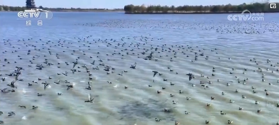 有著“鳥(niǎo)中大熊貓”之稱(chēng)的東方白鸛瀕危鳥(niǎo)類(lèi)2023年有500多只飛到了這里。近年,當(dāng)?shù)赝ㄟ^(guò)退漁還湖、電力設(shè)施入地等環(huán)境修復(fù)美化工程,生態(tài)質(zhì)量大幅提升。