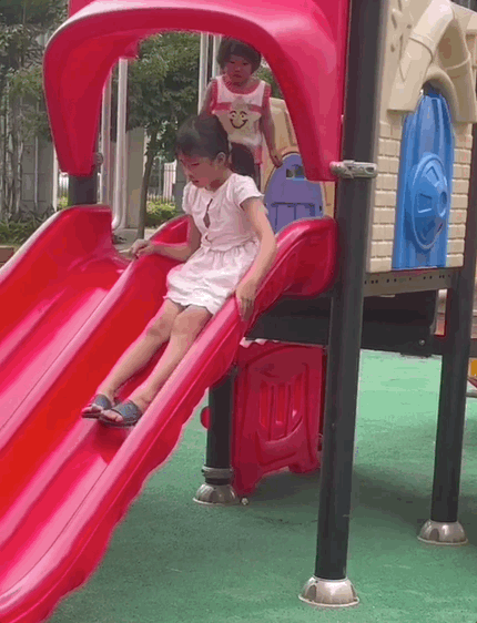與孩子們一起,依次滑下