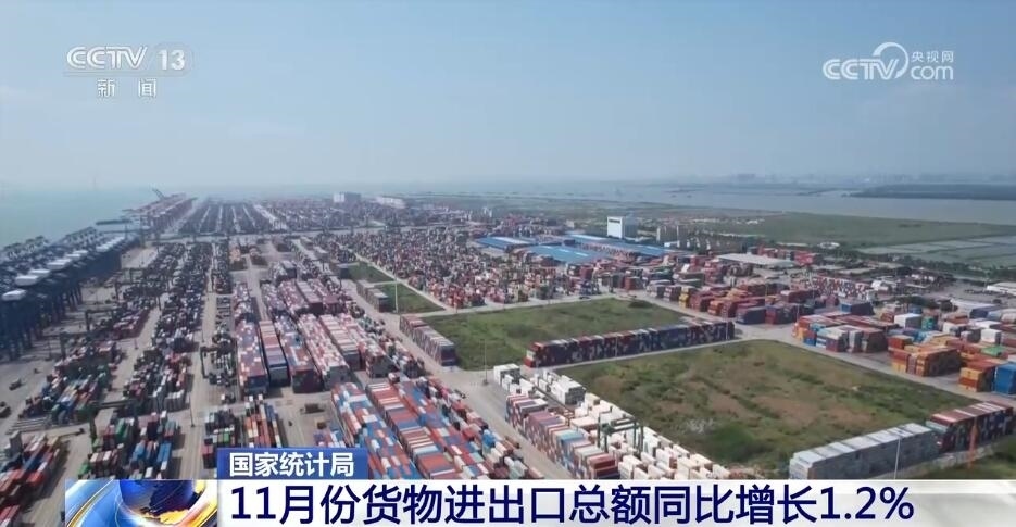 貨物進(jìn)出口同比增長,貿(mào)易結(jié)構(gòu)繼續(xù)優(yōu)化,11月份,貨物進(jìn)出口總額同比增長1.2%,比上月加快0.3個(gè)百分點(diǎn)。