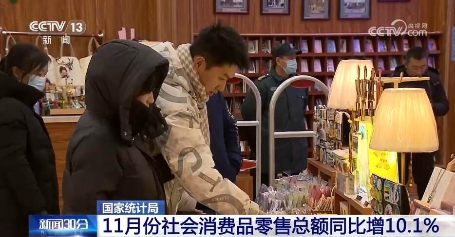 市場銷售增勢較好,服務(wù)消費(fèi)持續(xù)較快增長,11月份,社會(huì)消費(fèi)品零售總額同比增長10.1%,比上月加快2.5個(gè)百分點(diǎn)。