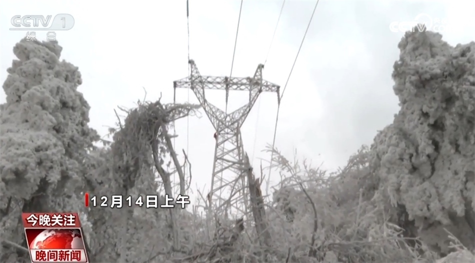 總臺記者 崔肖冉:這里的海拔超過1200米,現(xiàn)在室外氣溫降至零下20℃,感覺進入了一個冰窖。我在室外大概走上15分鐘左右,就感覺整個關(guān)節(jié)凍得發(fā)疼,而此時此刻在距離地面大概20多米的高空,維修人員正在輸電線路上進行緊急搶修,而且今天晚上風(fēng)很大,可想而知搶修難度有多大。