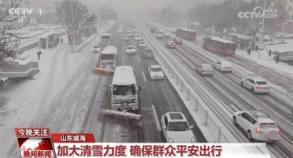 從16日開始,山東威海迎來強降雪天氣,晚上七點多,威海收費站負(fù)責(zé)高速公路養(yǎng)護的張輝,正帶著工友們用鏟車和裝載車緊張地進行道路積雪的清除工作。張輝告訴記者,所有養(yǎng)護人員凌晨三點就起床開始清雪。梯形車隊出發(fā)后,張輝又組織人員對拋錨的車輛進行救援,為滯留的貨車司機發(fā)放食品。