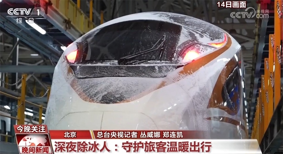 先除冰,再檢測,列車檢修員們化身雪夜除冰人,一列車下來最快要半個小時,如果趕上冰層厚的列車則需要三個小時。
