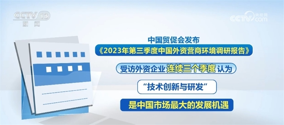 布局未來,如今,越來越多外資企業(yè)正在從“在中國制造”走向“在中國創(chuàng)造”。中國德國商會的調(diào)查報告就顯示,53%的德國企業(yè)計劃在未來兩年內(nèi)增加在中國本土化研發(fā)的職能;而中國貿(mào)促會發(fā)布的《2023年第三季度中國外資營商環(huán)境調(diào)研報告》則顯示,受訪外資企業(yè)連續(xù)三季度認(rèn)為“技術(shù)創(chuàng)新與研發(fā)”是中國市場最大的發(fā)展機遇。