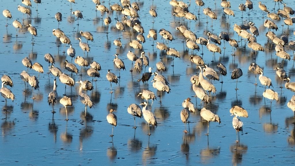 “12月初開始,鶴群陸續(xù)飛臨衡水湖。目前正處于候鳥越冬期,已有60余種、5萬余只候鳥飛到衡水湖越冬。”衡水湖國(guó)家級(jí)自然保護(hù)區(qū)資源保護(hù)局濕地生態(tài)監(jiān)測(cè)科科長(zhǎng)張余廣說。