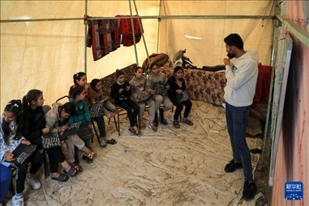 受新一輪巴以沖突影響,加沙地帶許多學(xué)校被用來收留無家可歸的民眾,學(xué)生們只能在臨時(shí)搭建的教室中學(xué)習(xí)。