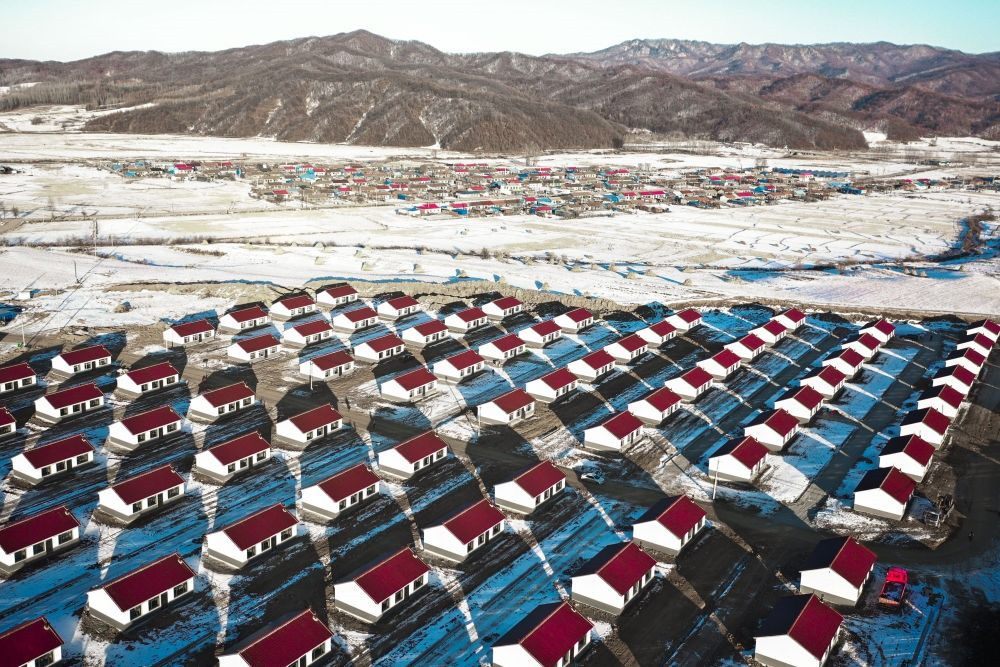 吉林省舒蘭市開(kāi)原鎮(zhèn)新開(kāi)村異地重建的新房(12月7日攝,無(wú)人機(jī)照片)。新華社記者 許暢 攝