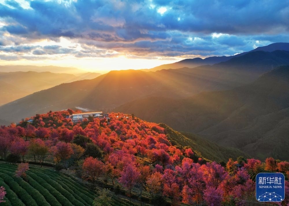 1月1日,位于云南省大理白族自治州南澗彝族自治縣的無量山櫻花谷迎來2024年第一縷陽光(無人機(jī)照片)。新華社發(fā)(適志宏 攝)