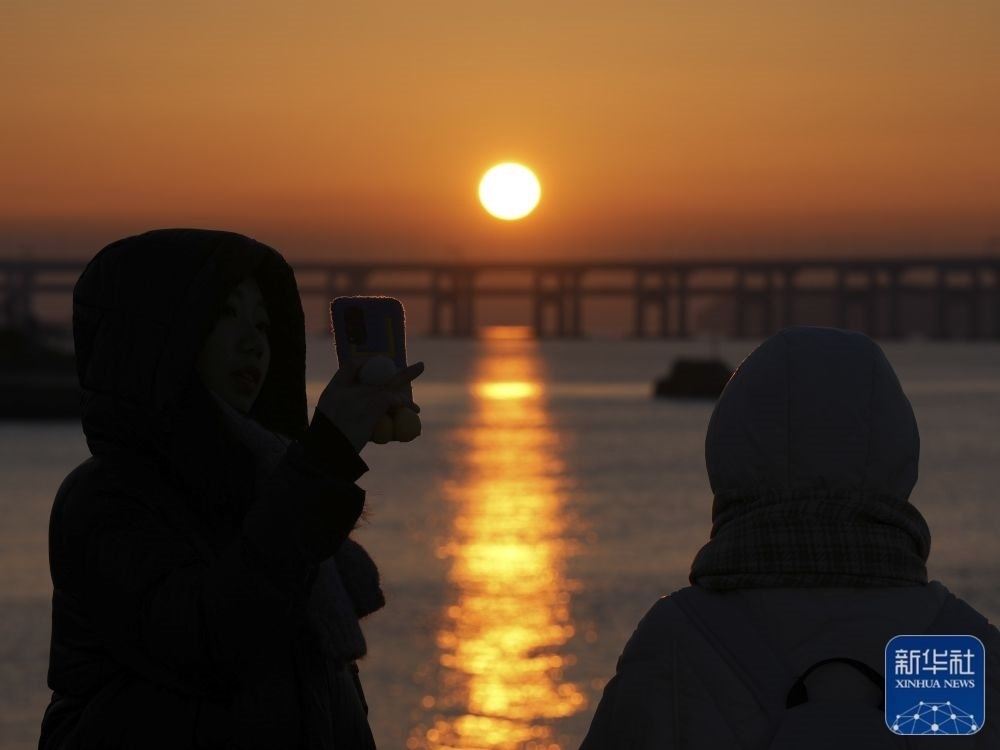 1月1日,人們在山東省煙臺市萊山區(qū)海濱觀賞新年日出。新華社發(fā)(唐克 攝)