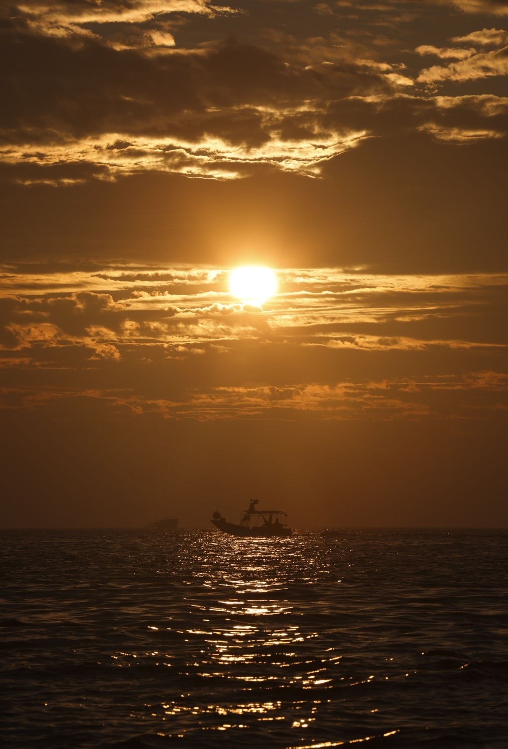 1月1日,一條漁船在新年第一縷晨光中從山東青島膠州灣跨海大橋旁駛過。新華社記者 李紫恒 攝