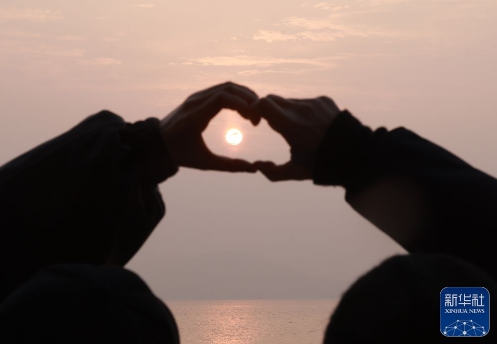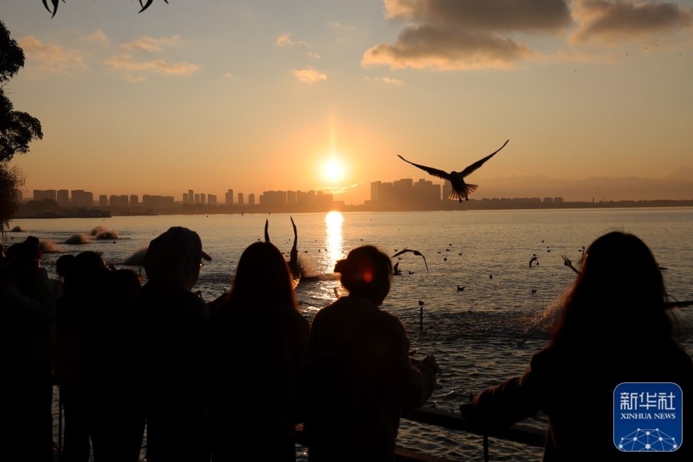 1月1日,在云南省昆明市西山區(qū)滇池,人們在觀賞新年第一天的日出。新華社發(fā)(張正舉 攝)