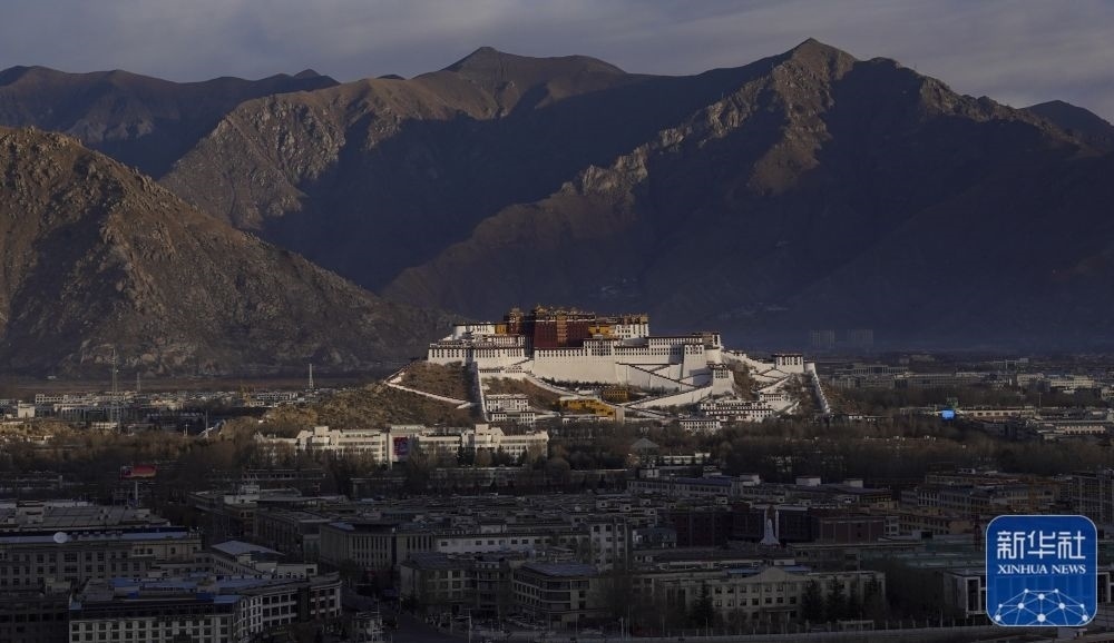 1月1日,新年第一縷陽光照耀在拉薩布達(dá)拉宮上。新華社記者 晉美多吉 攝
