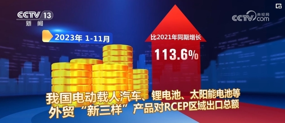 2023年1—11月,中國對(duì)RCEP成員國的中間品出口,比2021年同期增長17.4%,中國成為區(qū)域內(nèi)最大的中間品貿(mào)易國。2023年1—11月,我國電動(dòng)載人汽車、鋰電池、太陽能電池等外貿(mào)“新三樣”產(chǎn)品對(duì)RCEP區(qū)域出口總額,比2021年同期增長113.6%。