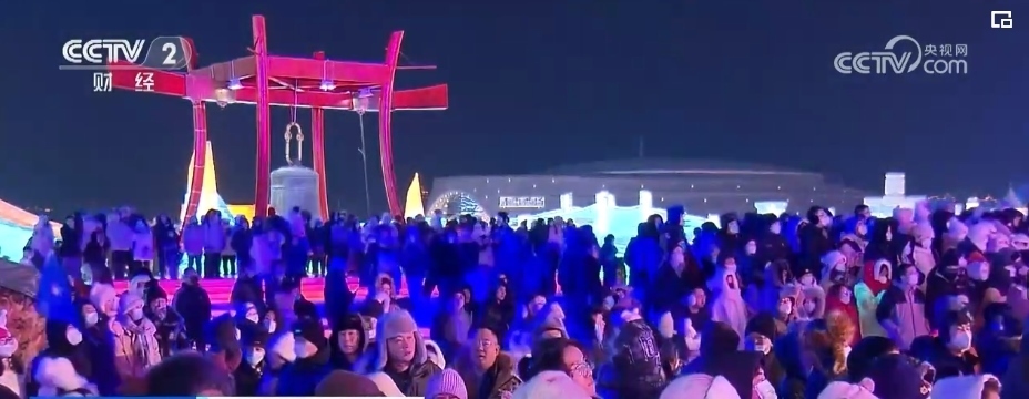 總臺(tái)央視記者 郭晉華:在這個(gè)冰雕玉砌的世界,一簇簇焰火映襯著流光溢彩的冰雕建筑群,帶著人們對(duì)新年的祈盼噴薄而出。哈爾濱冰雪大世界,雖然現(xiàn)在室外氣溫達(dá)到了零下20多度,但是大家冰雪跨年的熱情卻是點(diǎn)燃了全場(chǎng),來自全國(guó)各地的游客在這場(chǎng)狂歡中一起迎接新年的到來。