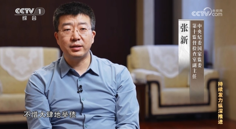 張新(中央紀(jì)委國(guó)家監(jiān)委第十監(jiān)督檢查室副主任):他嚴(yán)重違反政治紀(jì)律、政治規(guī)矩,非常突出的問(wèn)題就是違背新發(fā)展理念,盲目舉債搞勞民傷財(cái)、破壞生態(tài)環(huán)境的形象工程、政績(jī)工程,使得他所任職的地方政府性債務(wù)債臺(tái)高筑,對(duì)他所任職地區(qū)的經(jīng)濟(jì)社會(huì)高質(zhì)量發(fā)展造成嚴(yán)重影響。