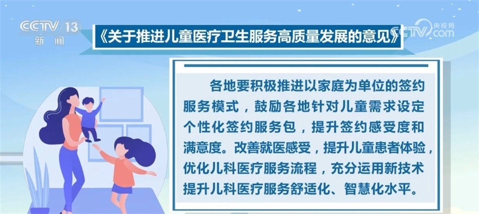 《意見》要求,各地要積極推進以家庭為單位的簽約服務(wù)模式,鼓勵各地針對兒童需求設(shè)定個性化簽約服務(wù)包,提升簽約感受度和滿意度。改善就醫(yī)感受,提升兒童患者體驗,優(yōu)化兒科醫(yī)療服務(wù)流程,充分運用新技術(shù)提升兒科醫(yī)療服務(wù)舒適化、智慧化水平。